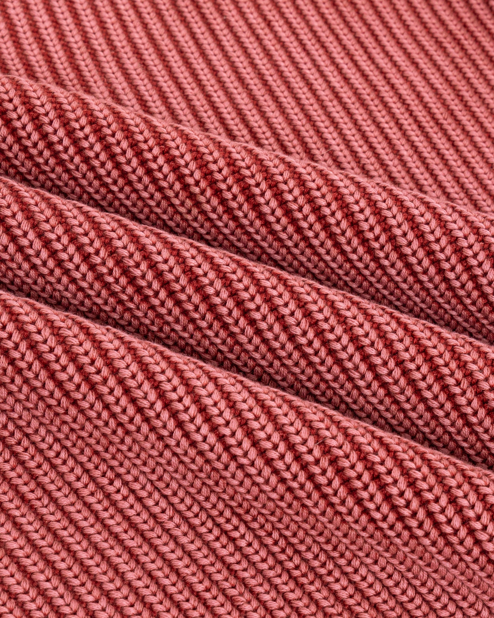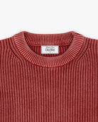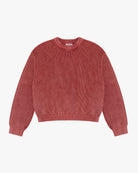 Our Heavy Shaker Sweater in Cherry. Premium heavyweight crewneck sweater knitted with 100% organic cotton. Featuring a distinctive wash for a lived-in look and feel, and a boxy relaxed silhouette for effortless styling.